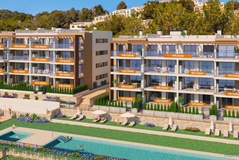 Moderne Wohnungen mit großzügigen Terrassen und Blick auf das türkisfarbene Meer bieten höchsten Wohnkomfort.
