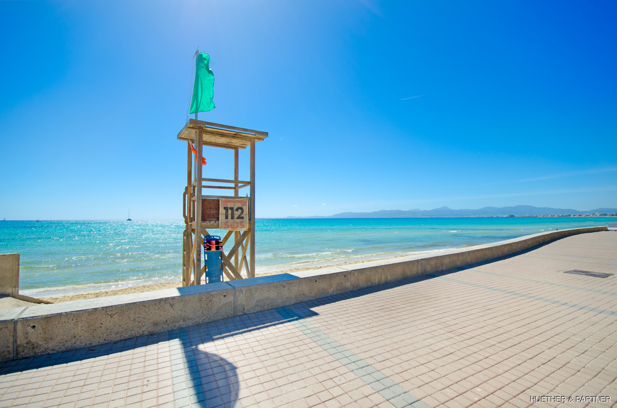 SArenal liegt am südöstlichen Ende der Bucht von Palma, ideal für Spaziergänge oder Radtouren entlang der Küste bis zur Kathedrale. Die Entfernung zum Stadtzentrum von Palma beträgt 12 Kilometer, der Flughafen Son Sant Joan ist nur 5,5 Kilometer entfernt.