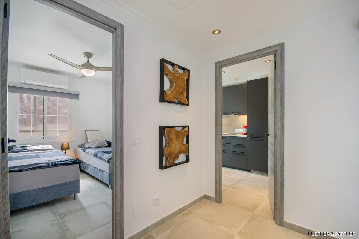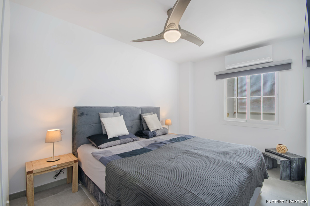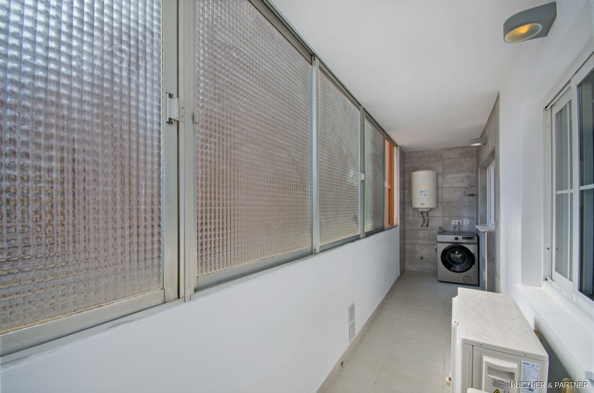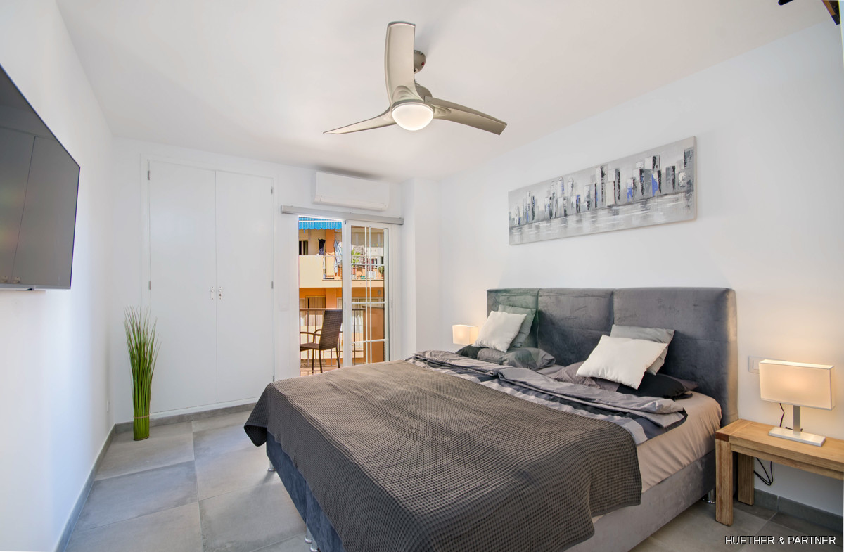 Ein Highlight ist der Balkon, der das spanische Lebensgefühl unter freiem Himmel vermittelt. Die Klimaanlage sowie Deckenventilatoren sorgen für ein angenehmes Klima, während ein Tiefgaragenstellplatz angemietet werden kann. Die Wohnung ist ein echtes Designobjekt und bietet trotz fehlendem Meerblick ein außergewöhnliches Wohngefühl.
