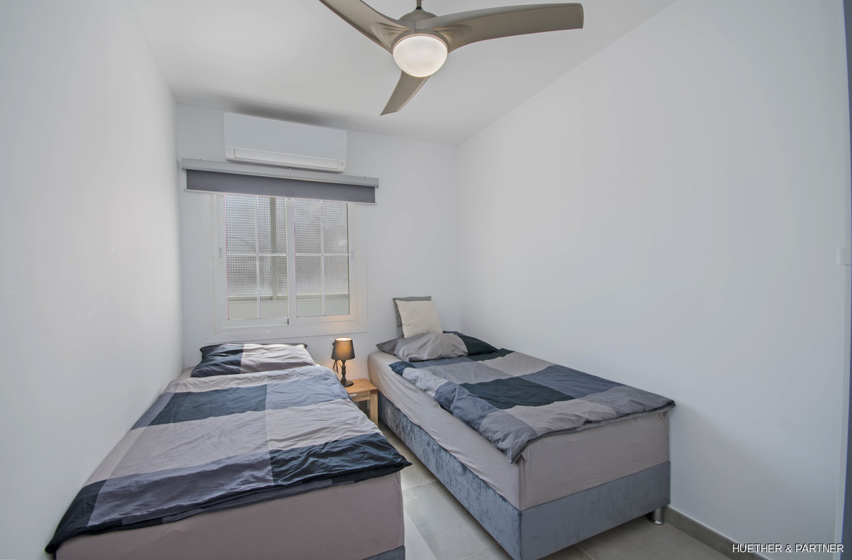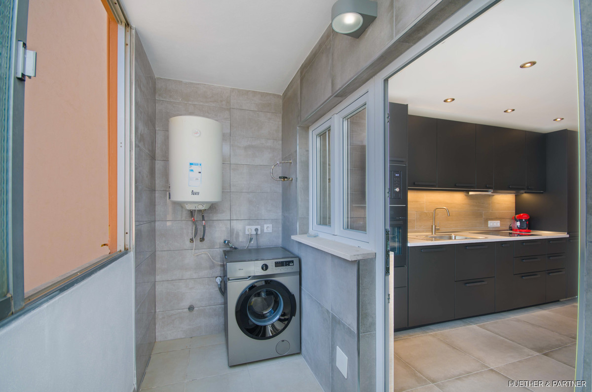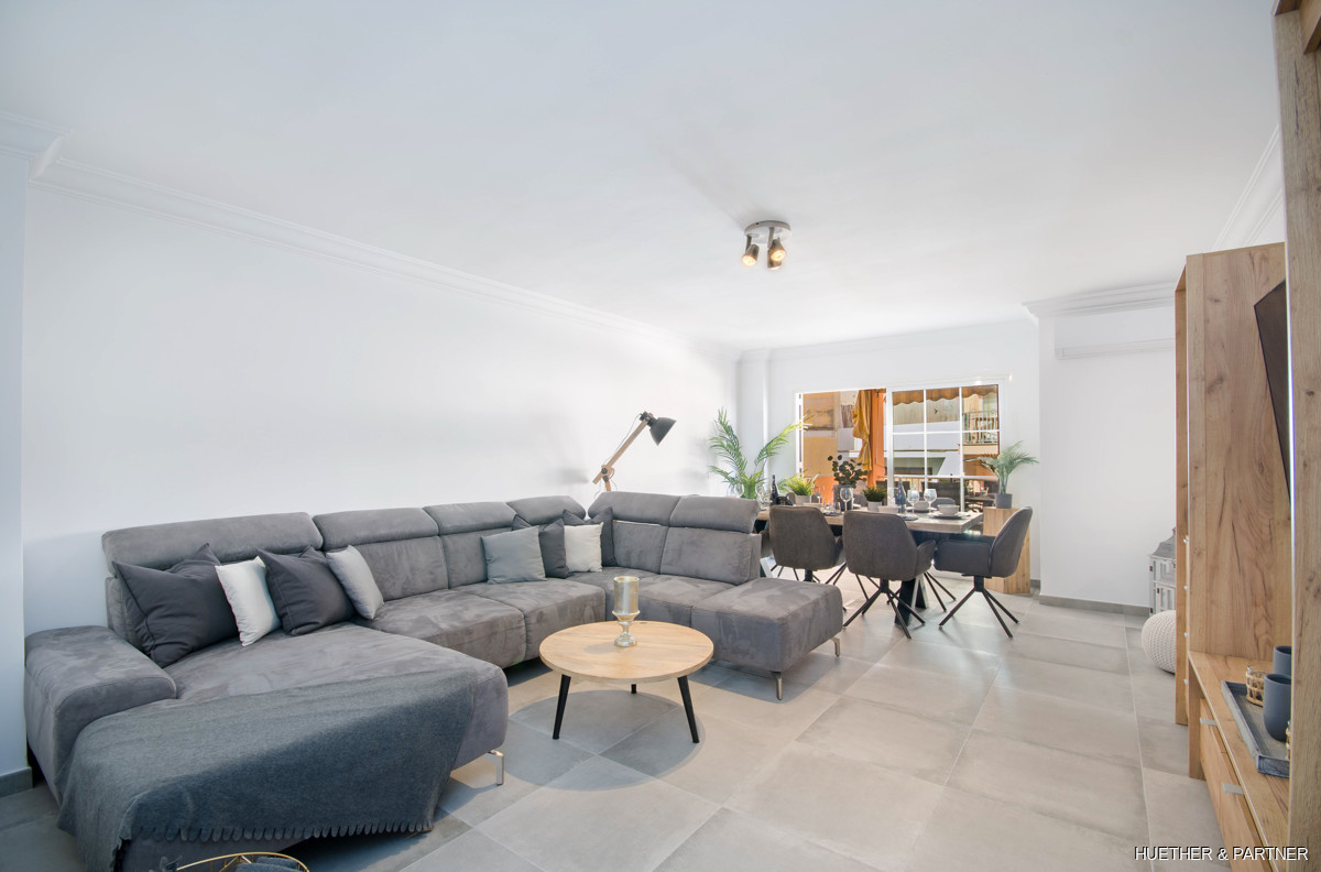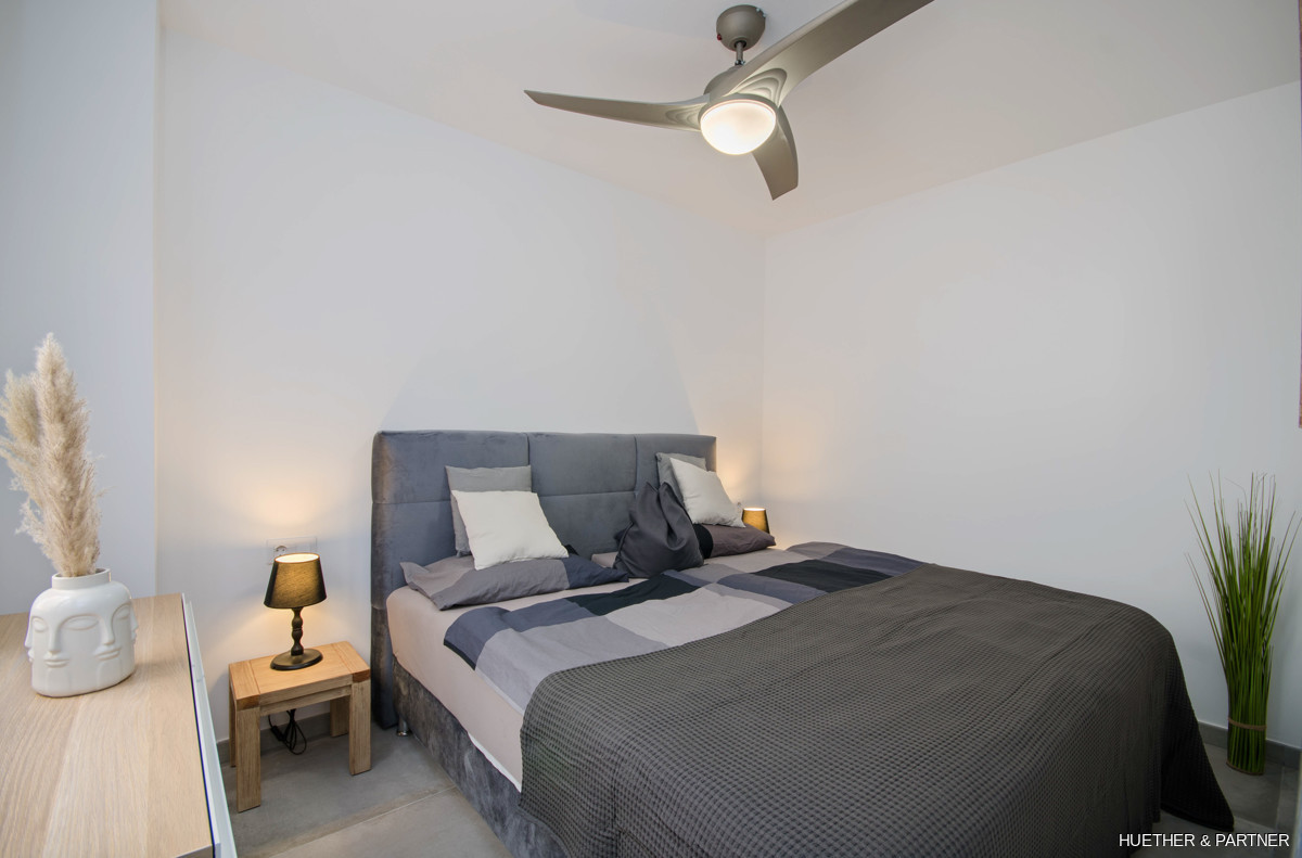 Ein Highlight ist der Balkon, der das spanische Lebensgefühl unter freiem Himmel vermittelt. Die Klimaanlage sowie Deckenventilatoren sorgen für ein angenehmes Klima, während ein Tiefgaragenstellplatz angemietet werden kann. Die Wohnung ist ein echtes Designobjekt und bietet trotz fehlendem Meerblick ein außergewöhnliches Wohngefühl.