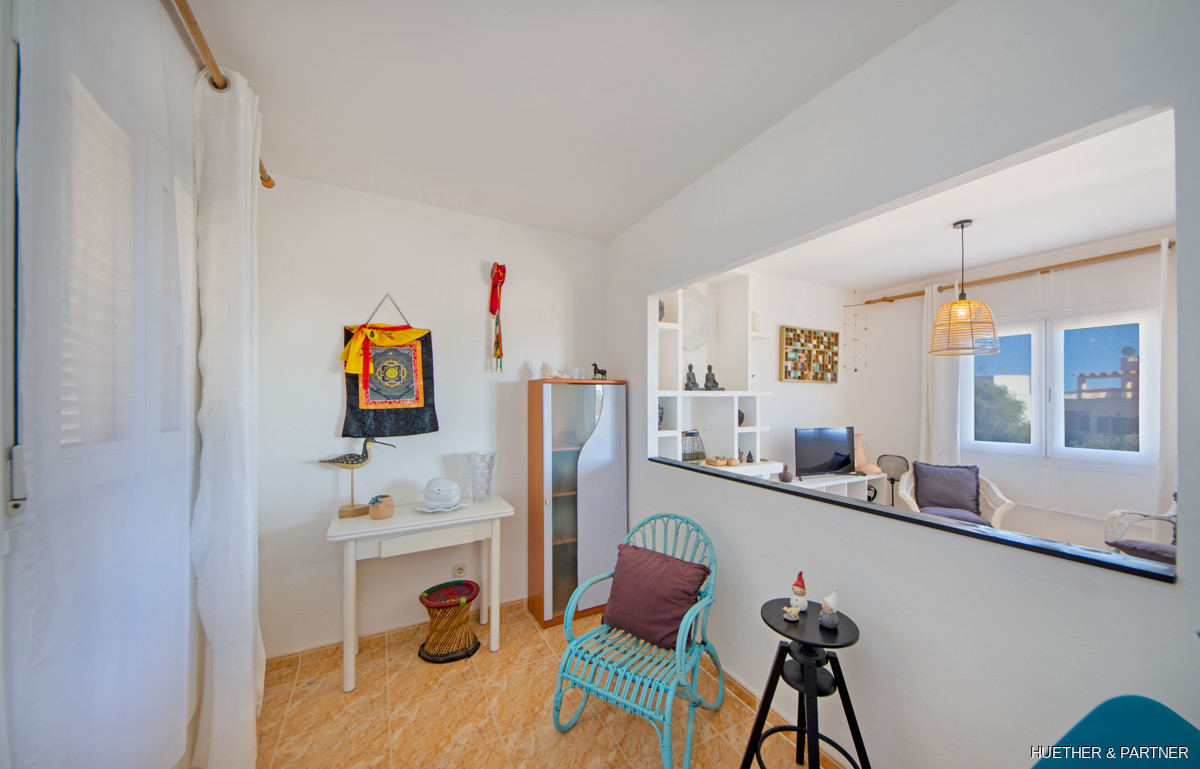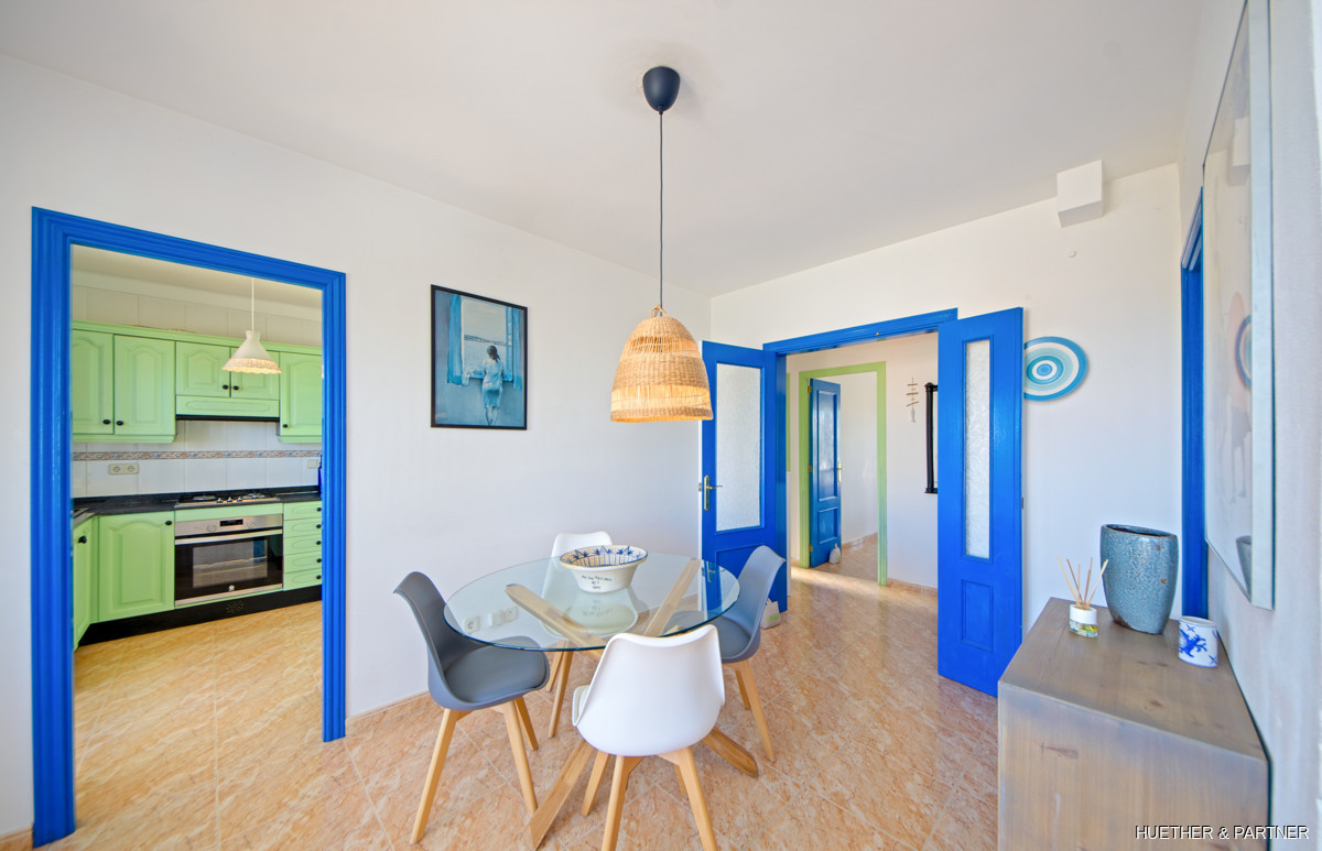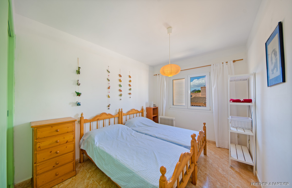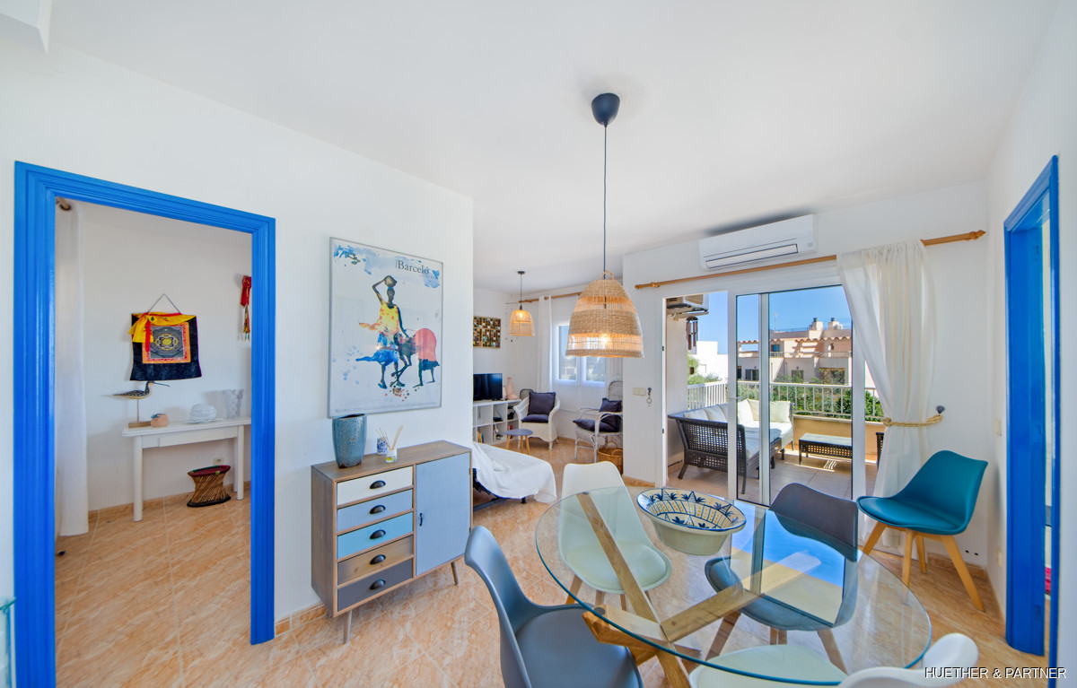 Diese helle Wohnung in Portocolom befindet sich im ersten Stock eines Mehrfamilienhauses mit 6 Einheiten. Sie verfügt über einen großen Balkon und bietet Meerfernblick. Zu den Ausstattungsmerkmalen gehören Aluminium-Fensterläden, PVC-Fenster mit Doppelverglasung, Einbauschränke, Klimaanlage für warm/kalt und ein Hauswirtschaftsbereich. Die Wohnung umfasst zwei Schlafzimmer, ein Badezimmer mit Badewanne, eine Küche mit Hauswirtschaftsbereich und einen Wohn-/Essbereich. Ein separates Zimmer kann in den Wohnbereich integriert werden. Zwei Stellplätze sind auf dem Parkplatz vor dem Haus verfügbar, und ein Abstellraum befindet sich auf der Dachterrasse.