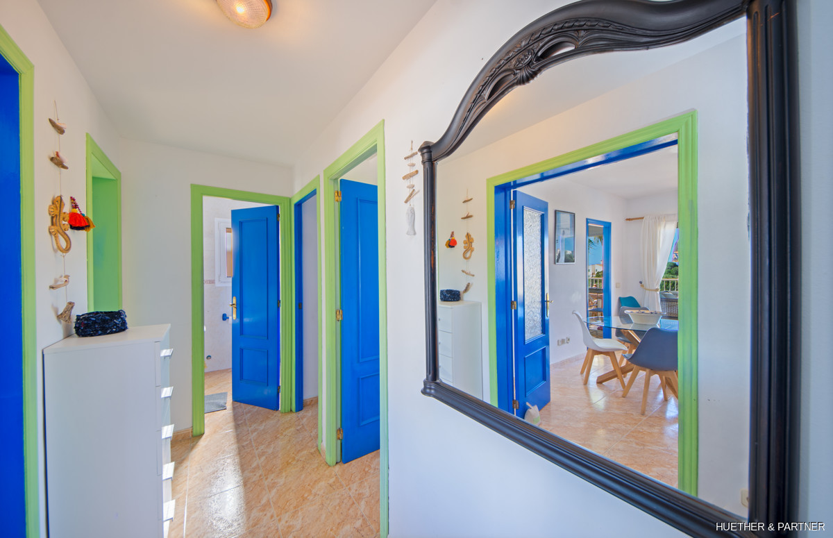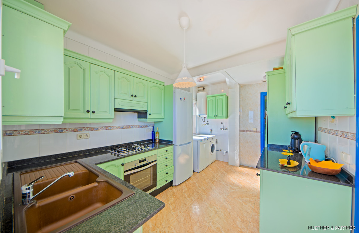 Der Wohnbereich und die Küche bieten Zugang zum großen Balkon. Eines der Schlafzimmer hat einen Balkon mit Blick auf den Klosterberg San Salvador. Von der gemeinschaftlichen Dachterrasse aus kann man bis zum Leuchtturm sehen. Die Gemeinschaftskosten betragen ca. 15 Euro pro Monat, die Müllgebühr ca. 170 Euro pro Jahr und die Grundsteuer ca. 340 Euro pro Jahr.