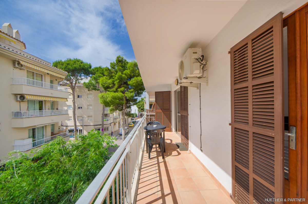 Diese modern gestaltete Wohnung befindet sich in der 2. Etage eines Mehrfamilienhauses in Cala Millor. Sie bietet auf etwa 65 m² ein helles Wohnzimmer mit direktem Zugang zu einem großen, sonnigen Balkon, eine voll ausgestattete Küche mit neuen Elektrogeräten und separater Waschküche, zwei Schlafzimmer und ein Badezimmer mit Dusche. Die Wohnung ist komplett möbliert und verfügt über eine Klimaanlage im Wohnbereich.