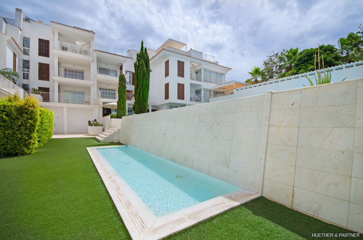 Zusätzlich gibt es zwei weitere Schlafzimmer und Bäder. Die Dachterrasse bietet eine Pergola, einen Gasgrill und einen Hauswirtschaftsraum. Elektrische Handtuchhalter und eine integrierte Klimaanlage sorgen für zusätzlichen Komfort. Sicherheitsmerkmale wie ein Hochsicherheits-Eingangsschloss und eine Alarmanlage runden das Angebot ab. Zwei Tiefgaragenstellplätze und ein geräumiger Abstellraum stehen ebenfalls zur Verfügung.