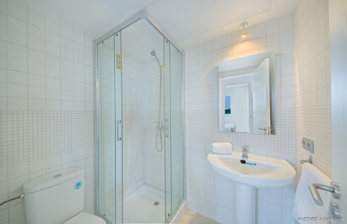 Diese moderne Etagenwohnung in der 3. Etage bietet einen atemberaubenden Meerblick vom großzügigen Balkon. Die unbezogene Wohnung verfügt über eine offene Küche, die in den Wohn-/Essbereich integriert ist, und ist ideal für Erstbezieher. Zwei Schlafzimmer mit Einbauschränken und zwei Badezimmer - eines mit Dusche, das andere mit Badewanne - bieten Komfort. Ein separater Hauswirtschaftsraum mit Platz für Waschmaschine und Heißwassertherme ergänzt das Angebot.