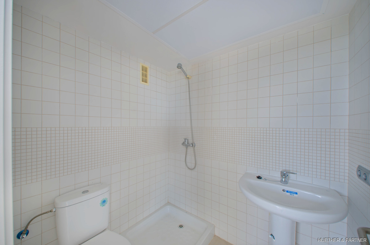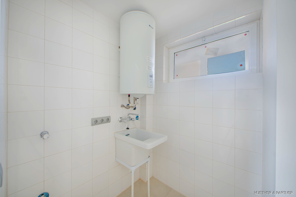 Zusätzlich bietet die Wohnung einen Stellplatz in der Tiefgarage. Die Immobilie wird unmöbliert angeboten und ist ideal für Käufer, die eine Erstbezugsmöglichkeit suchen. Die Aluminiumfensterläden und -türen verleihen der Wohnung einen modernen Touch. Ein Aufzug sowie ein Gemeinschaftspool gehören ebenfalls zur Anlage.