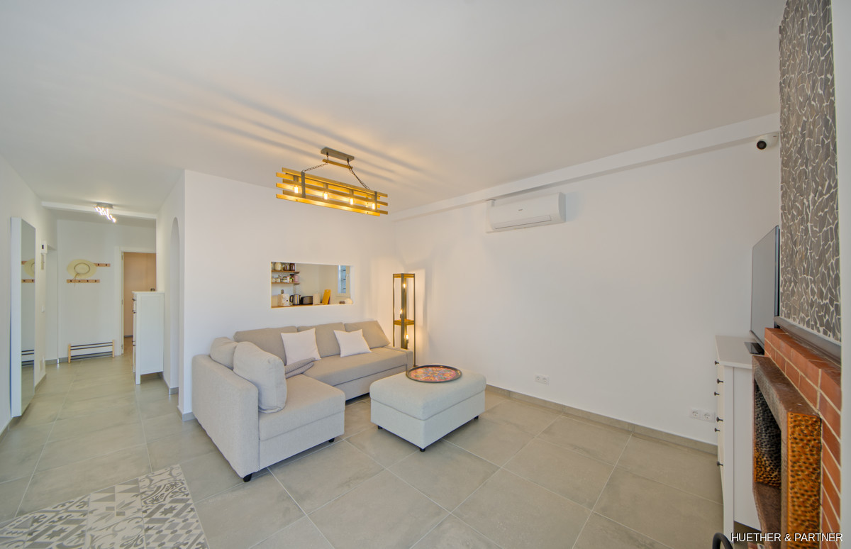 Diese komplett renovierte Erdgeschosswohnung in einem Reihen-Endhaus in Cales de Mallorca bietet eine großzügige Wohnfläche von 75 m². Sie umfasst eine neue Einbauküche, ein modernes Badezimmer mit bodenebener Dusche und ein kleines Schlafzimmer, das als Arbeitszimmer genutzt werden kann. Der Wohnbereich ist offen gestaltet und verfügt über einen Kamin sowie einen Essbereich. Von hier aus gelangt man auf die 35 m² große, private Terrasse, die einen separaten Abstellraum bietet. Die Wohnung ist vollständig möbliert, einschließlich neuer Möbel und einer neuen Therme. Alle Fenster und Türen sind doppelt verglast und mit Sicherheitsglas ausgestattet.