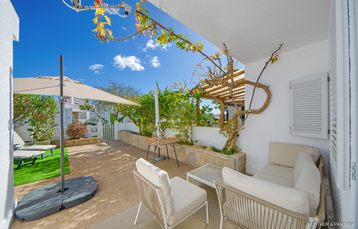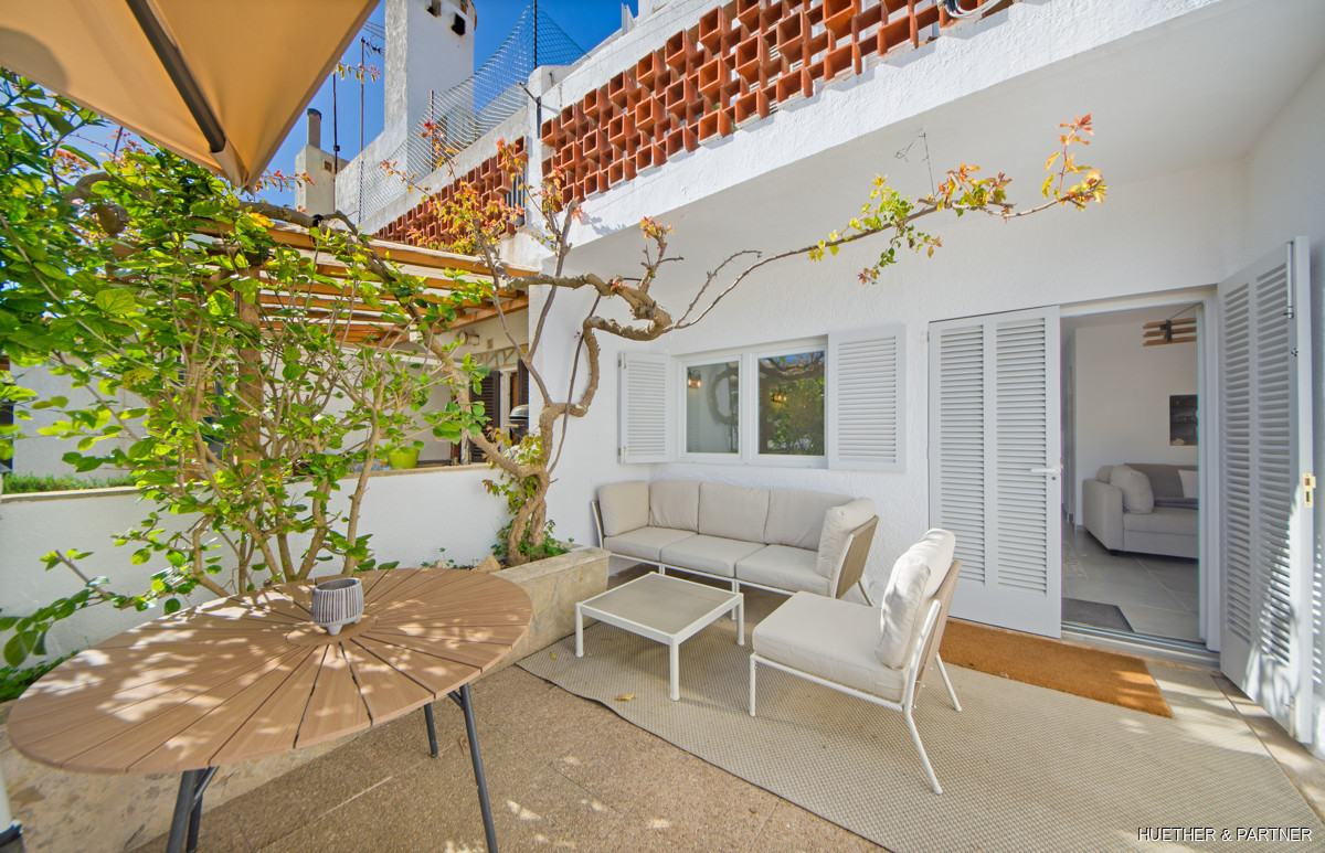Die Immobilie verfügt über drei neue Klimaanlagengeräte, weiße Holzfensterläden und Glasfaserinternet. Die komplette Sanierung umfasst neue Zu- und Abwasserleitungen sowie einen neu verlegten Boden mit mallorquinischem Fliesen-Mosaik. Die Wohnung bietet viel Privatsphäre und ist durch einen Weg in der Anlage nur eingeschränkt einsehbar. Alle Möbel sind im Kaufpreis enthalten.