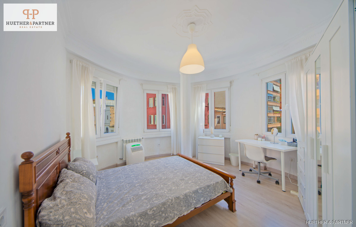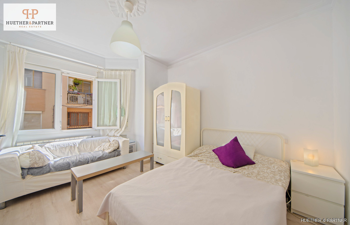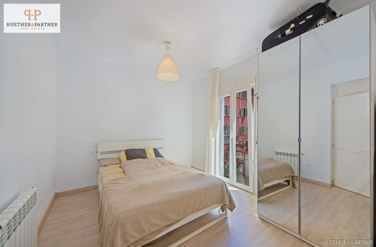 Diese helle Wohnung in Palma wurde renoviert und bietet neben drei Schlafzimmern ein separates Appartement. Sie eignet sich ideal zur Vermietung als WG oder als gemütliche Stadtwohnung für die Familie. Der Grundriss umfasst einen Eingangsbereich, zwei Schlafzimmer, ein Wohnzimmer mit Zugang zu einem weiteren Doppelzimmer mit Balkon und eine halb offene Küche.